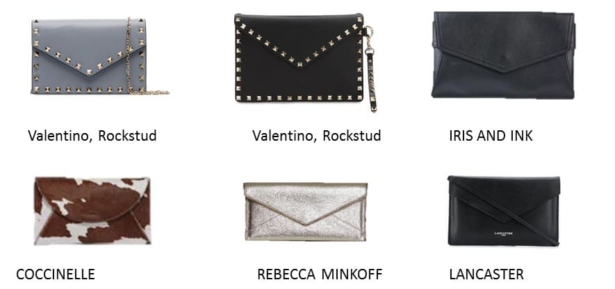 Клатч-конверт (envelope)имеет клапан-крышку в форме треугольника. В запечатанном, а точнее в закрытом виде он действительно напоминает обычный почтовый конверт.