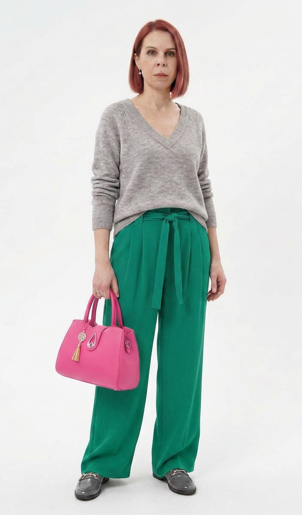 - Акцентные цвета. Самые сочные и живые цвета палитры. Подходят для акцентов в повседневном и деловом гардеробе, для торжественных мероприятий. Также их хорошо использовать в пальто, жакетах, обуви, украшениях