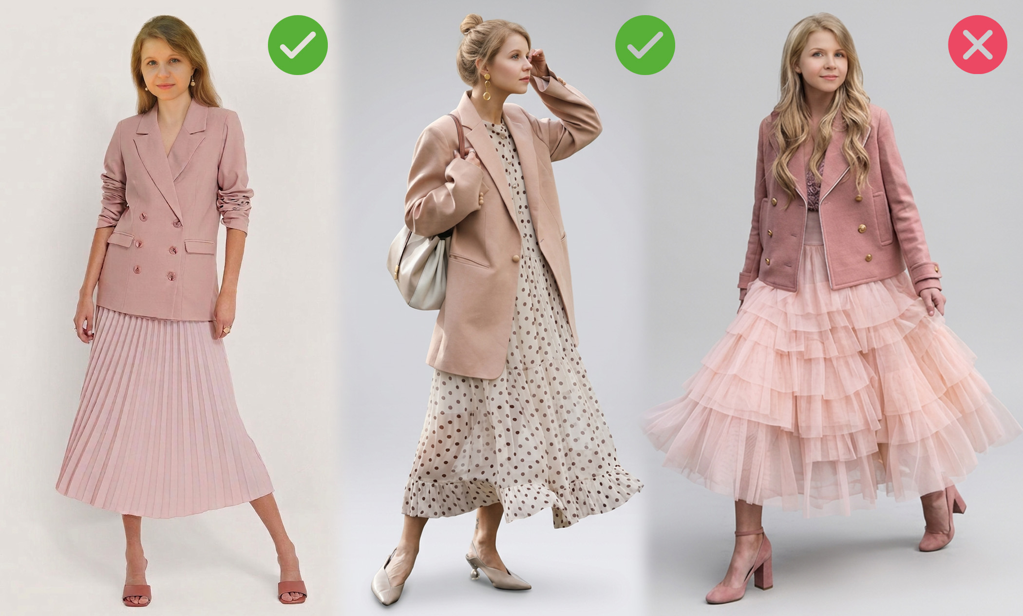 Но у ее типажа есть одна ловушка. Это опасность выглядеть слишком легкомысленной, глупой и инфантильной. Именно этого, как мне кажется, и боялись родители Тины, когда противились выбору розового цвета в одежде. А чтобы избежать этой опасности, нужно соблюдать несколько простых правил.
